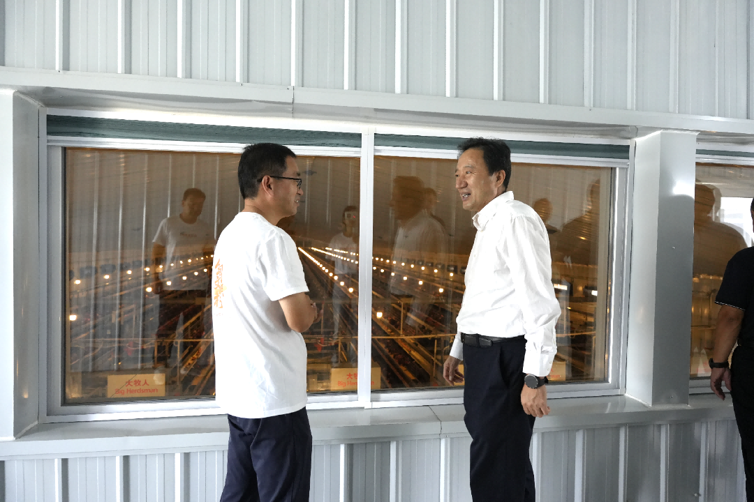 調研組隨后實地走訪蛋雞養殖舍,朱總介紹道,目前蛋雞存欄量穩定在60萬羽,年產蛋量過萬噸,智能化管理大大提高蛋雞成活率,遠超傳統養殖水平。隨后,白書記詢問企業二期工程進展,并對此表示期待,鼓勵企業加快建設進度,早日形成更大產能、發揮更強帶動作用。他強調,畜牧業是保障民生供給、推動鄉村產業振興的重要支柱,易豐農業要持續發揮示范引領作用,進一步強化科技支撐,優化生產管理,嚴格把控產品質量安全,不斷提升產業競爭力;相關部門要主動對接企業需求,做好政策扶持與服務保障,共同推動全區畜牧業高質量發展。