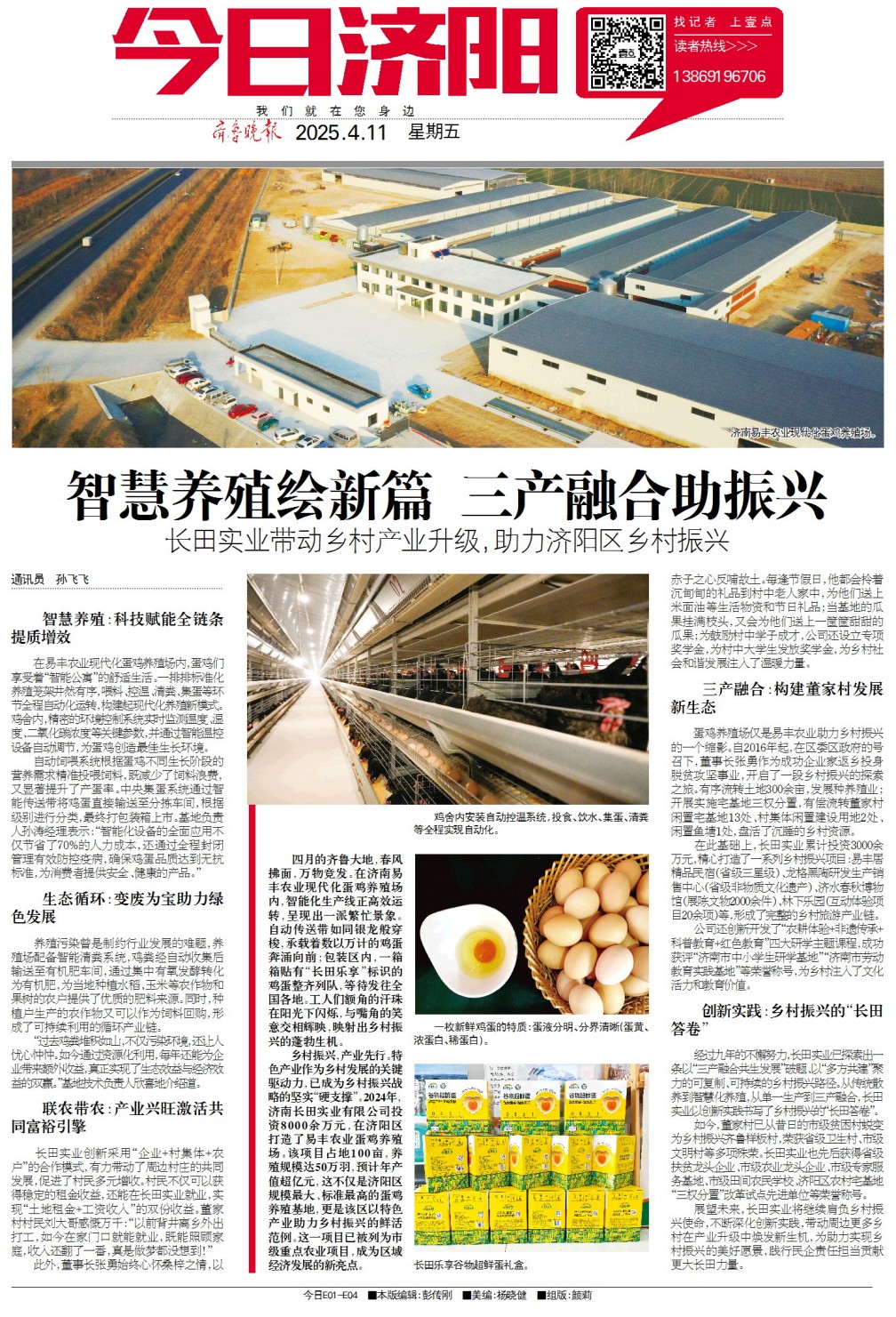 2024年,四月的齊魯大地,春風(fēng)拂面,萬物競發(fā)。在濟(jì)南易豐農(nóng)業(yè)現(xiàn)代化蛋雞養(yǎng)殖場內(nèi),智能化生產(chǎn)線正高效運(yùn)轉(zhuǎn),呈現(xiàn)出一派繁忙景象。自動(dòng)傳送帶如同銀龍般穿梭,承載著數(shù)以萬計(jì)的雞蛋奔涌向前;包裝區(qū)內(nèi),一箱箱貼有“長田樂享”標(biāo)識(shí)的雞蛋整齊列隊(duì),等待發(fā)往全國各地。工人們額角的汗珠在陽光下閃爍,與嘴角的笑意交相輝映,映射出鄉(xiāng)村振興的蓬勃生機(jī)。