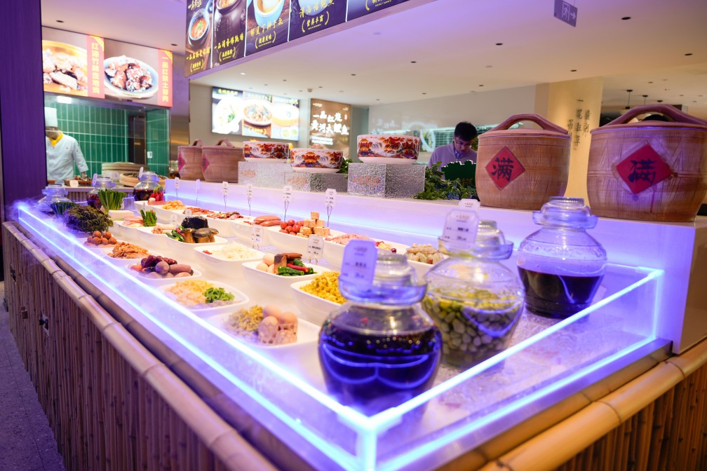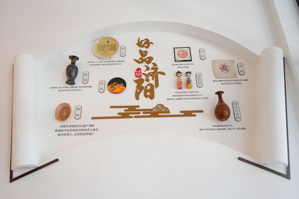 獨具匠心之處在于,一品黃河20個包間以黃河所流經(jīng)的九個省份和進入山東省后所流經(jīng)的九個市的名稱命名,房間內(nèi)軟裝如掛畫等體現(xiàn)沿黃省份、城市的文化特征,并通過桌卡形式全面呈現(xiàn)文化內(nèi)涵,將黃河文化具象為沉浸式餐飲體驗。比如山東廳懸掛的是山東具有代表性的非遺文化代表作--魯錦,魯錦的每一梭都是對自然的敬畏,每一紋都是對生活的期許;黃河源頭青海廳懸掛的是青海省具有代表性的非遺文化代表作熱貢唐卡;四川廳懸掛的是四川具有代表性的非遺文化代表作蜀繡做成的熊貓壁畫;有“天下黃河富寧夏”之說的寧夏廳,懸掛的是寧夏最具代表性的非遺文化產(chǎn)品回民剪紙等等。讓每一餐都成為一場文化之旅。