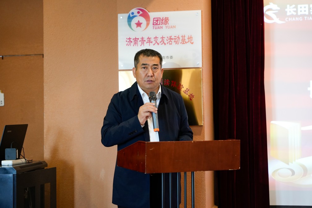 張總對各位領導、嘉賓的到來表示了熱烈的歡迎。他講到,長田書屋的誕生,源于我們對“全民閱讀”號召的響應、對“文化潤城”的樸素信仰。近年來,長田書屋通過持續舉辦讀書會、作家分享會、親子閱讀,參與“書香濟陽 閱見美好”全民閱讀月等各類文化活動,守護文化根脈、傳遞精神力量。長田實業也始終關注鄉村閱讀,去年在長田實踐教育基地設立了“長田董家鄉村書屋”,作為長田書屋的延伸。一方面將長田書屋豐富的圖書資源引入鄉村,另一方面將鄉村民俗等本土文化元素融入城區活動,推動城鄉閱讀陣地在資源共享中同頻共振。構建起“城市有陣地、鄉村有支點、全域有書香”的立體化閱讀網絡,讓文化的溫暖浸潤市民心田。長田書屋正式加入協會,成為濟陽區首家會員單位,是一份榮譽,更是一次“歸隊”。未來,長田書屋將緊跟協會步伐,讓優質閱讀資源如活水般,流向濟陽的每個角落,助力全民閱讀走實走遠。