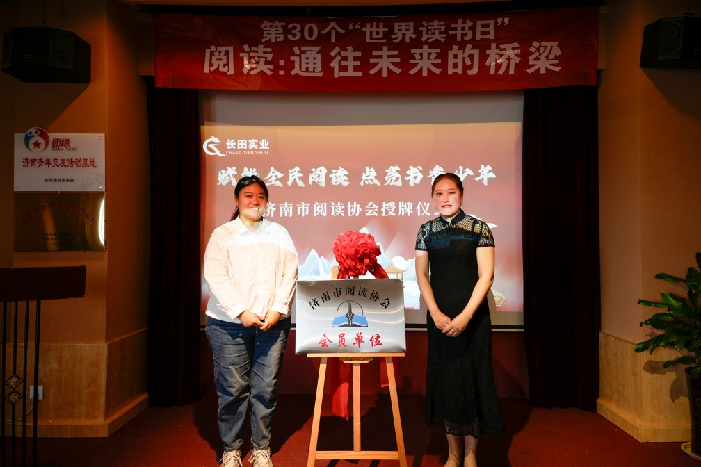 濟南市閱讀協會會長何麗亞、長田實業副總經理張曉彤共同為濟南市閱讀協會濟陽區首家會員單位長田書屋揭牌,標志著長田書屋正式融入濟南市閱讀協會大家庭,開啟更廣闊的閱讀交流平臺,攜手更多志同道合者,共同探索閱讀推廣新模式,讓書香潤澤人心,文化薪火相傳,為濟陽文化發展注入新活力。