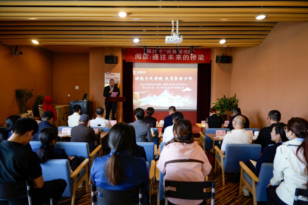 賦能全民閱讀,長享美好生活。為更好推動全民閱讀,強化閱讀陣地建設,進一步播撒閱讀火種,為青少年成長注入書香力量,4月21日上午,在第30個“世界閱讀日”到來之際,長田實業開展了“賦能全民閱讀 點亮書香少年”活動。濟陽區委宣傳部分管日常工作的副部長、區文明辦主任劉京祥,區文化和旅游局黨組書記、局長王春蘭,區文聯黨組書記、主席王超,濟南市閱讀協會會長何麗亞,濟南市作協副主席、優秀兒童文學作家鞠慧等領導出席活動。長田實業黨支部書記、董事長張勇,團委書記、副總經理張曉彤,副總經理、華百廣場總經理成峻志參加活動。