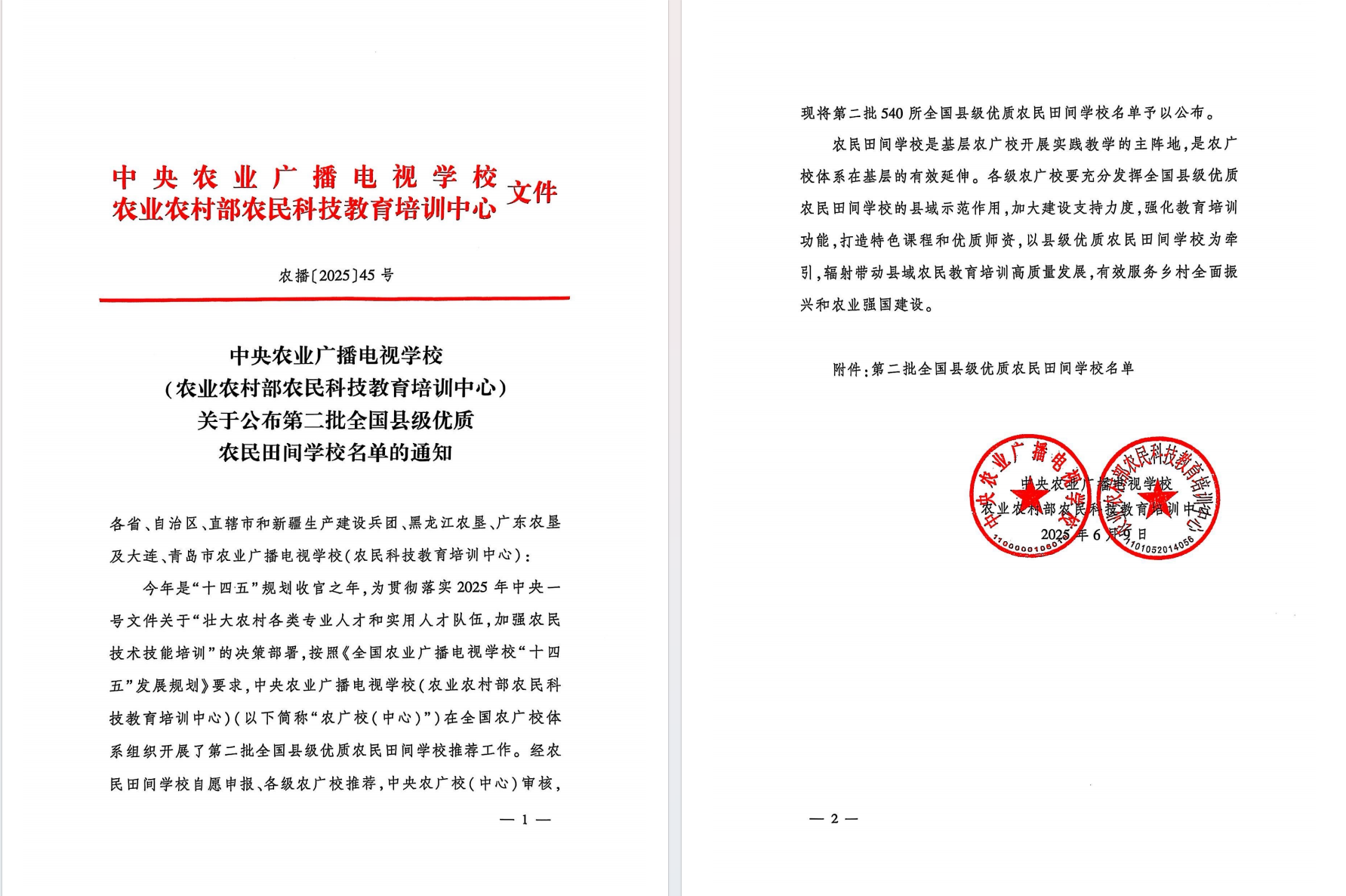 2025年6月9日,中央農業廣播電視學校(農業農村部農民科技教育培訓中心)公布了“第二批全國縣級優質農民田間學校名單”。濟南易豐農業科技有限公司農民田間學校,榮耀上榜,榮獲國家級殊榮!